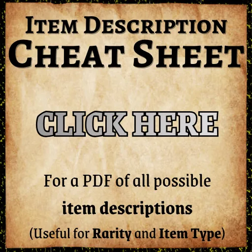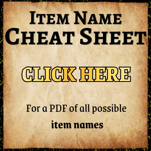 - Answers must match an Item Name on the Item Name Cheat Sheet and are: